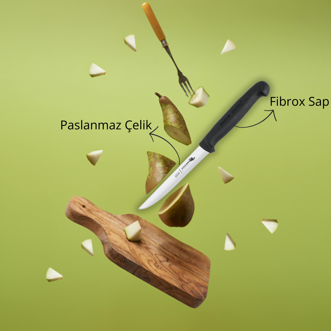 Taita Serisi’nin üstün özelliklerini taşıyan MGB-54101.11 6 Parça Meyve Bıçak Seti, profesyonel kaliteyi mutfağınıza getiriyor. Hafif ve güçlü çelik yapısı sayesinde hem dayanıklı hem de pratik bir kullanım sunar. Ergonomik sap tasarımı, polipropilen ve fibrox yüzeyiyle yüksek ısıya dayanıklı, hafif ve konforlu bir tutuş sağlar. İdeal sertlik seviyesiyle geç körelir ve kolayca bileyleme imkânı tanır. Keskinliği ve kırılmaya karşı dayanıklılığıyla öne çıkan bu set, meyve ve sebze hazırlığında vazgeçilmez bir yardımcıdır. Kullanım talimatlarına uygun olarak, uzun ömürlü bir performans sağlar. %100 memnuniyet garantisiyle sunulan bu seti keşfedin!
